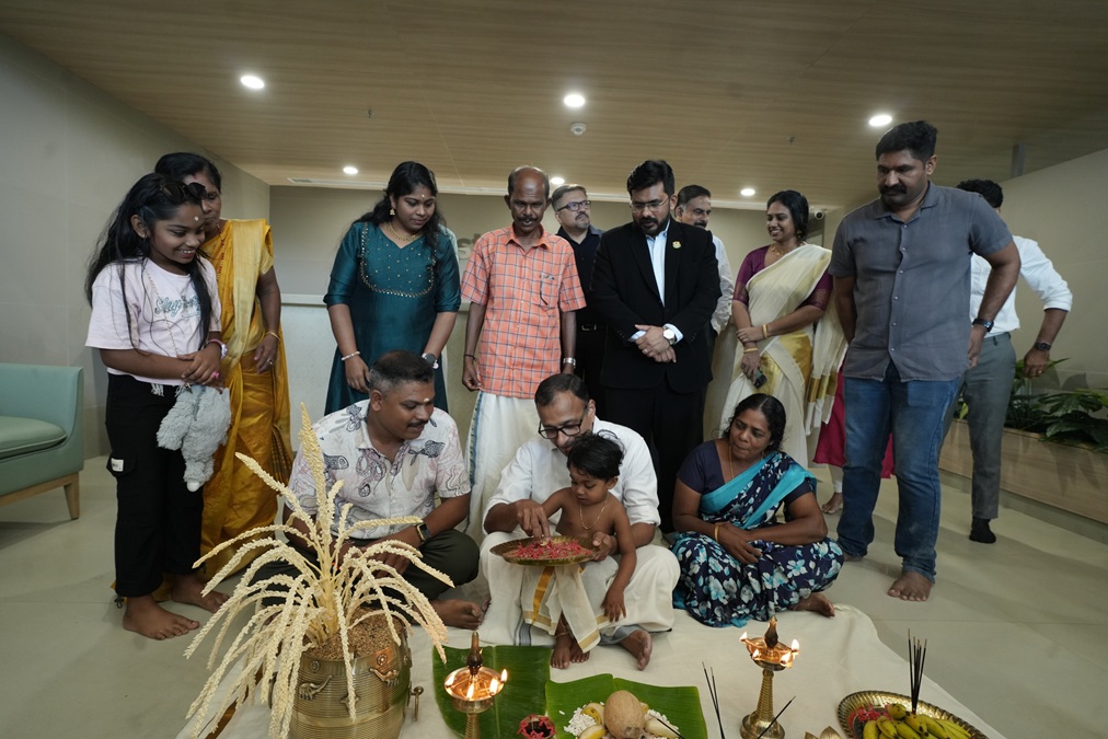 The family living in Coimbatore came down to Aster Medcity for baby Shikha’s Vidyarambham ceremony as it their wish to have their daughter’s learning journey ceremonially begin under the guidance of Dr. Mathew Jacob.