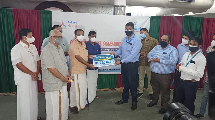 During the inauguration of the initiative today, a cheque with an amount of Rs 4 lakhs was handed over to Cochin Corporation standing Committee Chairman, P R Reneesh by Arun Viswanath, Cluster Head, Aakash Educational Services Ltd.