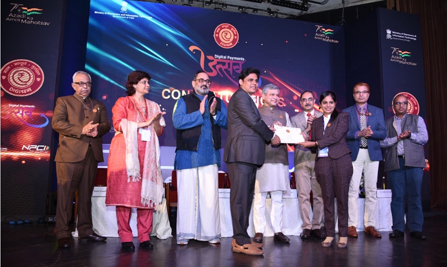Nimisha J. Vadakkan, Managing Director, Aceware Fintech Services and Jimmin J. Kurichiyil, CEO, Aceware Fintech Services, received the award from Ashwini Vaishnaw, Minister for Communications, Electronics and Information Technology and Railways at Azadi Ka Amrit Mahotsav held in New Delhi. Rajeev Chandrasekhar, Minister of State for Skill Development, was also present on the occasion.