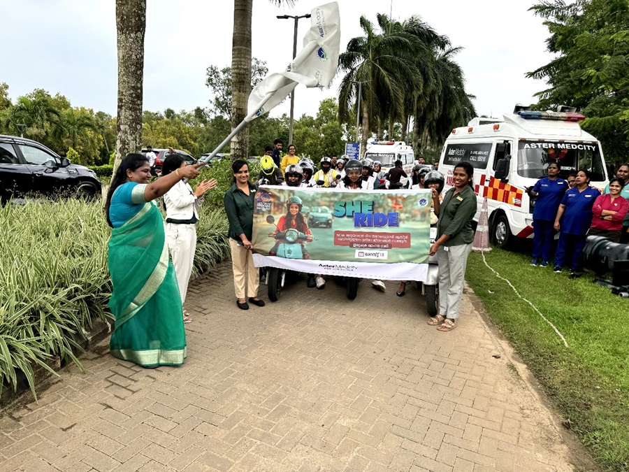 In observance of World Organ Donation Day, Aster Medcity organized a thought-provoking series of events aimed at raising awareness about the critical importance of organ donation. The day’s activities included a unique event titled ‘She Ride,’ where over 50 women employees rode their two-wheelers from the ‘Garden of Life’ at Aster Medcity to Queens Walkway, spreading the message of organ donation. The rally was flagged off by Capt. Thangam Rajarathinam, Chief Nursing Officer at Aster India.