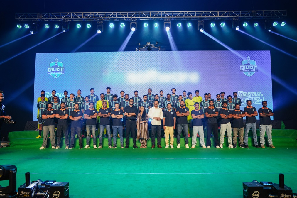 Amid a cheering gathering of tens of thousands of football fans, Calicut FC introduced its 31-member team for the second edition of the Super League Kerala (SLK) Football Tournament that begins within a fortnight.