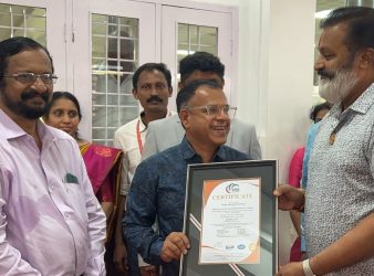 M K Soman, Managing Director of Somans Leisure Tours receiving the ISO 9001 – 2015.