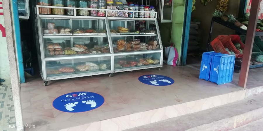 The free placement of these stickers ensures that customers either at a kirana store or tyre dealerships, follow social distancing norms while carrying out day to day activities. The CEAT Circle of Safety stickers replace the circles drawn by shopkeepers outside shops. CEAT has reached out to more than XX tyre dealers and kirana/ grocery stores across Kerala. This circle of safety will ensure social distancing for customers while they are doing basic things like buying essentials.