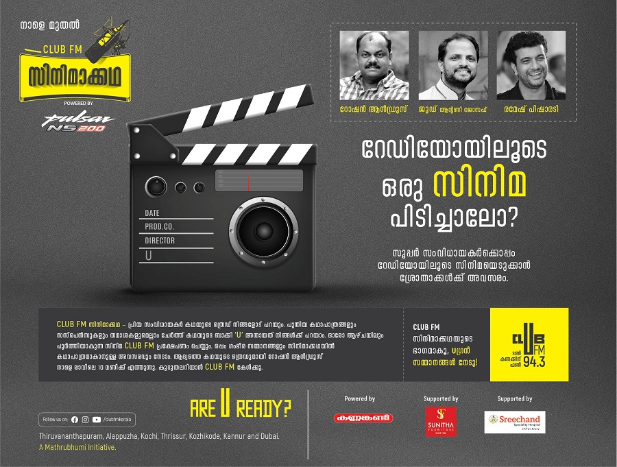 The initiative was launched on 15th February and the daily response rate has been rapidly increasing. What took us by surprise is the social media conversations on the initiative and Hari Narayanan, famous music director who heard the promotion while in his car, proactively contributing a song for the first movie being directed by Roshan Andrews. The best story contributors for the day as chosen by the Director also get gratified. In the days to come we are expecting popular movie stars to be part of the excitement too. Directors Jude Antony and Ramesh Pisharody will be featured next. The final audio cinema, curated by each of the directors will be approx. 20 minutes long and will feature a mix of Club FM voice artists and selected listeners. It will be launched in Club FM and our digital/social assets.