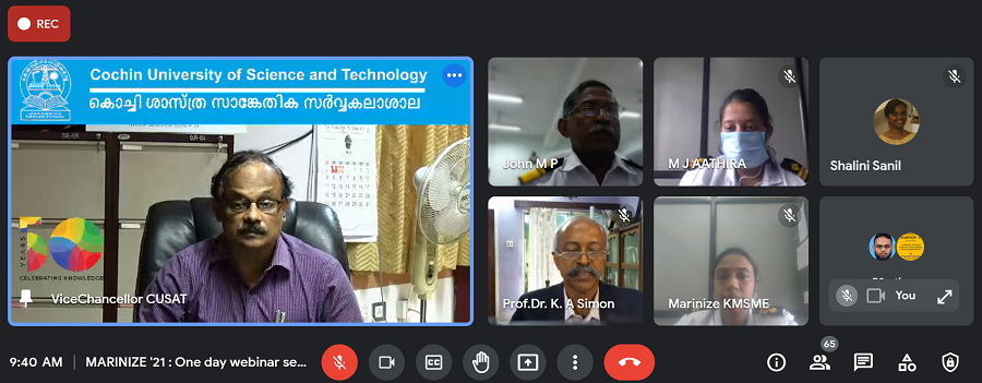 CUSAT K.M. School of Marine Engineering organized a national webinar MARINIZE’ 21 on the theme “A Digital Passage: Progressive tools for Maritime Research and Development”. Vice Chancellor Dr. K.N. Madhusoodanan inaugurated the webinar. Dr. K.A. Simon, Director, Alberts Maritime Institute, Thrikkakkara, Prof. M.P. John, Director, KMSME, Prof. Venugopal, Course-in- charge and Kriparaj K.G., Convenor, Marinize’21 spoke. Dr. Tide P.S., Professor, School of Engineering, CUSAT, Justin P. Antony SRF, DRDO, Hyderabad and Sankar G. Nath, Engineer, NPOL, Kochi and Biswajith Haridasan, Assistant Professor of K.M. School handled various sessions.