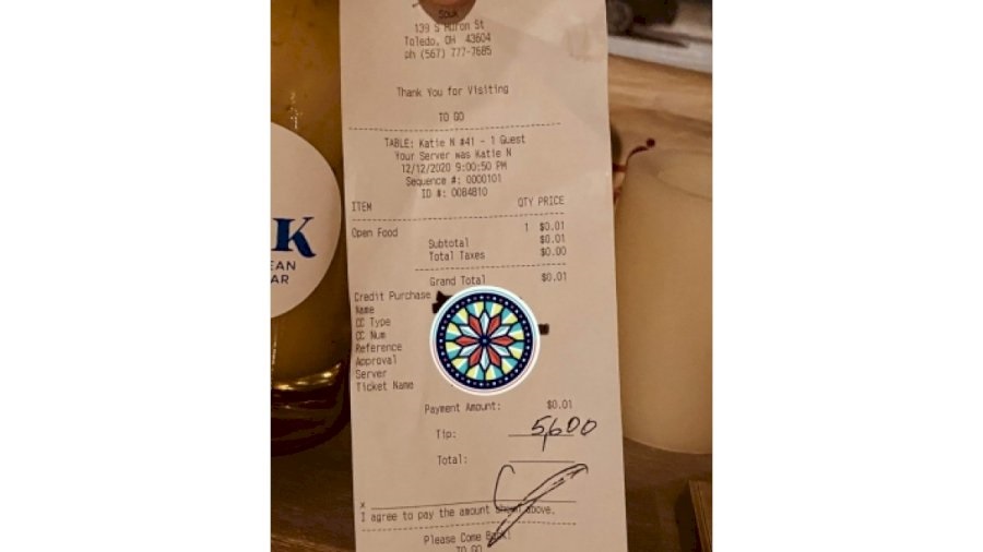 Along with the post, Salloukh also attached a photo of the receipt that the customer left behind, showing a one penny food purchase and the handwritten $5,600 tip.