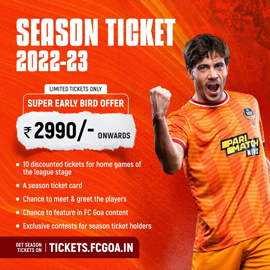 FC Goa fans will have the opportunity to watch all 10 home games of the league stage for the 2022-23 season of the Hero Indian Super League with the newly launched season ticket. Prices for the first phase of the Super Early Bird offer will see season tickets priced as low as ₹2990, the Club announced Wednesday.