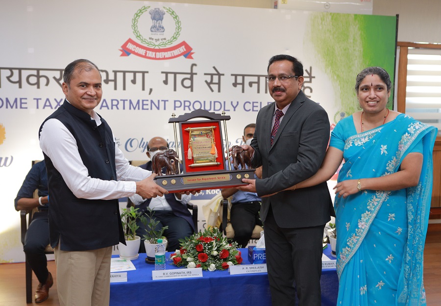 Federal Bank has been honoured by the Income Tax Department for being the Top Corporate Taxpayer in Kerala Region. In a felicitation ceremony held at the Central Revenue Building of the Department at Kochi, the Principal Director of Income Tax (investigation), Kerala, Zakir Thomas handed over the memento to Pradeepan K, Deputy Vice President & Head- Taxation Department, Federal Bank.