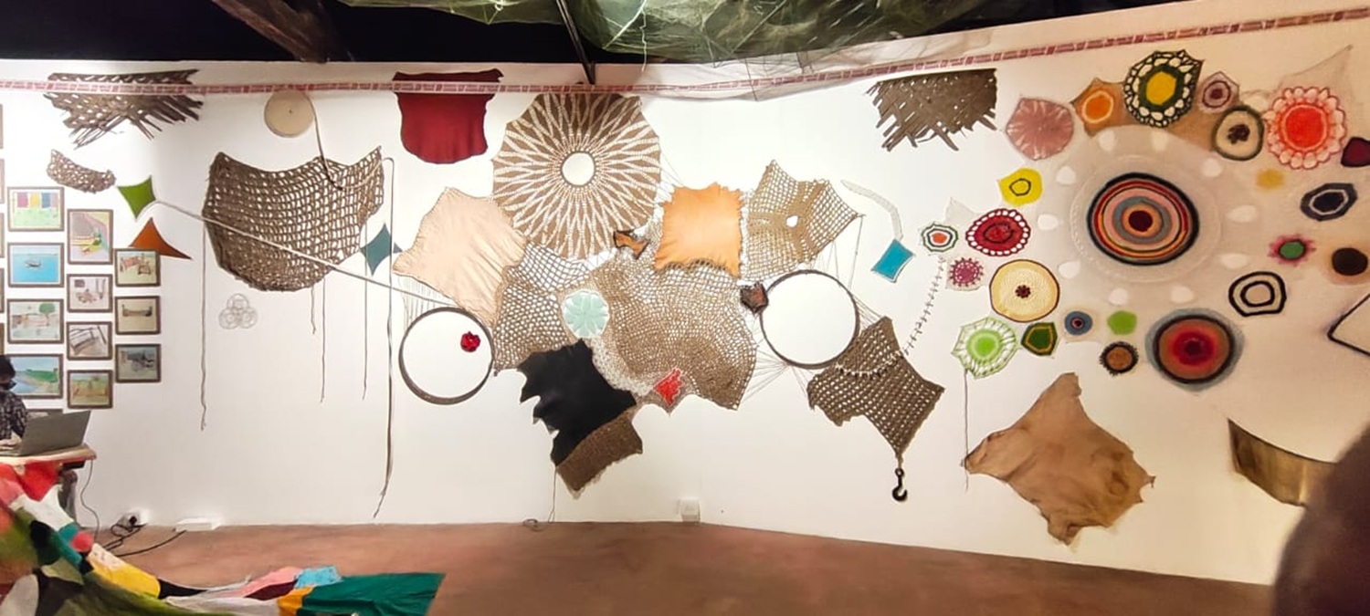 The artworks by the Panjeri Union are exhibited at the Coir Godown at Fort Kochi’s Aspinwall House. This four-year-old art collective, with its origin in Banipur not far from Kolkata, comprises 14 artists drawn from diverse fields including visual art, design, literature, cinema, photography and music.