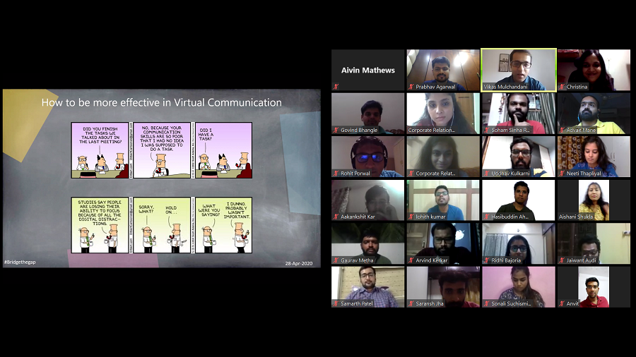 Vikas Mulchandani, the Director of Business Operations at Swiggy spoke about the nuances of body language which is difficult to grasp in the absence of actual physical interaction. “58% of one’s communication takes place through body language when we interact with others in the workplace be it through coffee break chats, offline seminars, rapport building sessions, face-to-face meetings and more”, he explains. Mulchandani offered tips on how one can be more effective via virtual conversations and the importance of communicating the right emotions through an email or text message. He also went over text and email etiquette, developing relationships and trust online, posture in a video conference call and emphasized on the importance of professionalism at all times.