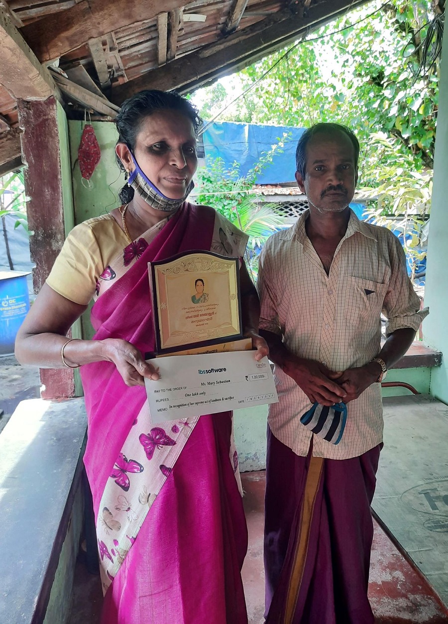 Senior officials of IBS Software visited Mary Sebastian at her residence on Monday and handed over a cheque for the amount along with a citation. IBS Software hailed Mary’s act as a “remarkable gesture by a disadvantaged woman without any expectation of recognition or reward.”