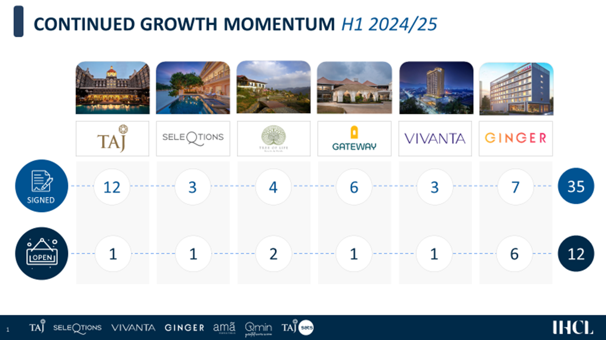 Indian Hotels Company (IHCL), India’s largest hospitality company, accelerates its growth momentum of portfolio expansion in H1 FY 2025 with 35 signings and 12 openings taking its total portfolio to 345 hotels with an industry leading pipeline of 115 hotels.