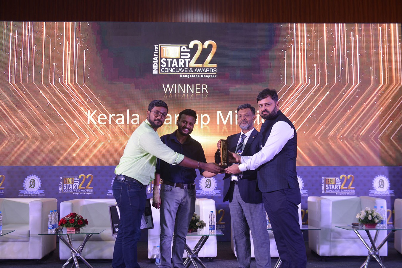 Kerala Startup Mission (KSUM) bagged the Best Institute Award for Startup Initiative at the IndiaFirst Tech Startup (Bangalore Chapter) organized by All India Council for Robotics & Automation (AICRA).