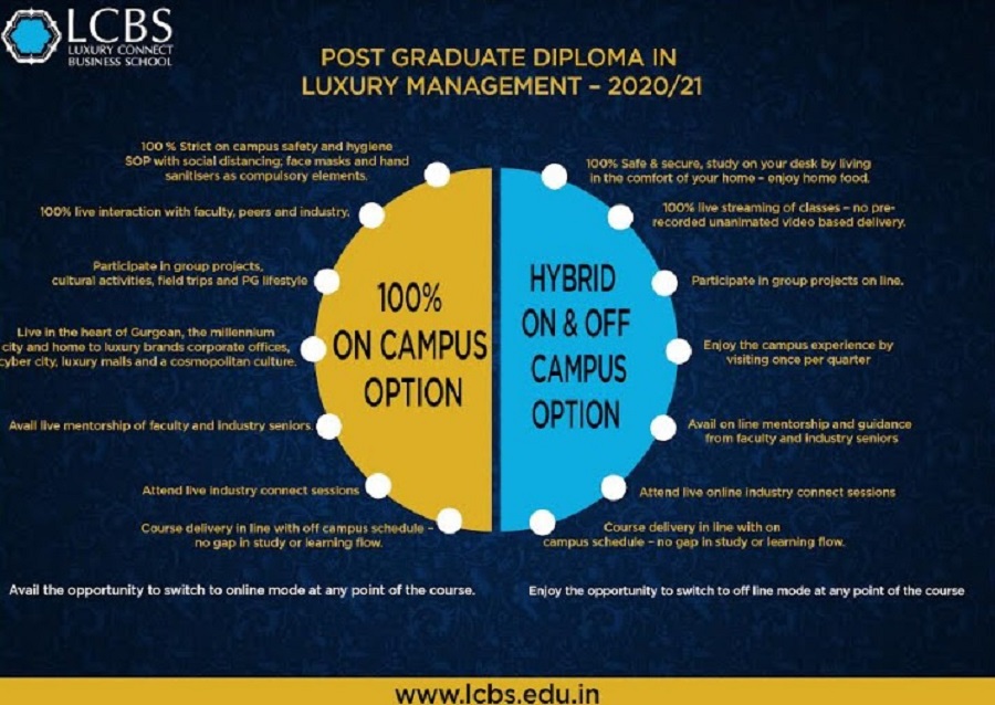 Further, bearing in mind the pandemic and a natural reluctance of students and parents to travel outside the comfort of their homes, LCBS has announced a first ever hybrid model in luxury brand management. For the next cohort of September 2020 intake, the institute has once again innovated its offerings to the students.