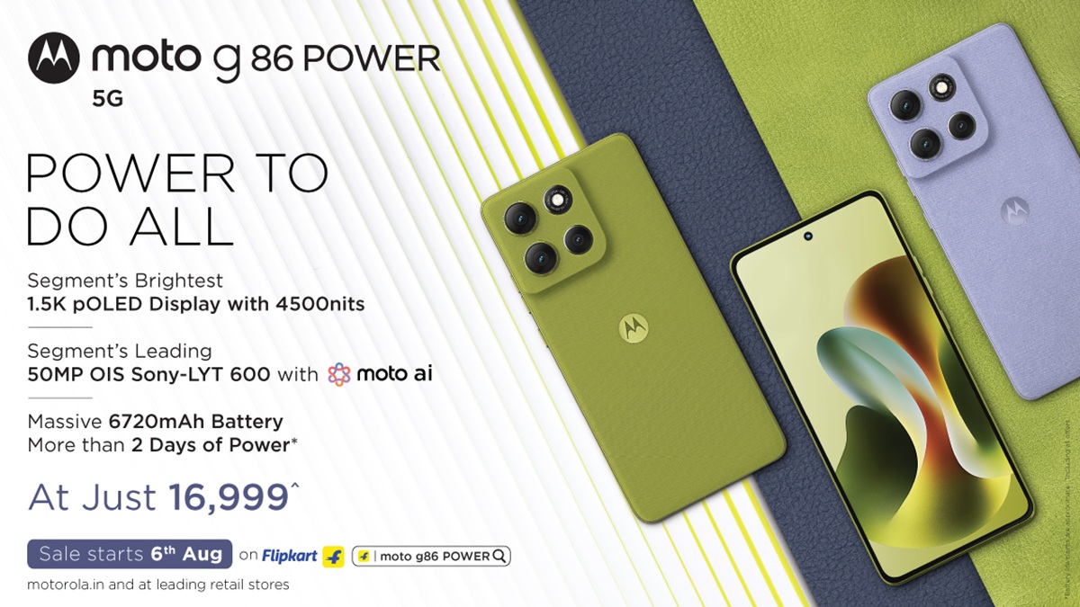 Commenting on the launch, T.M. Narasimhan, Managing Director, Mobile Business Group – India, said: “The moto g86 POWER once again pushes the boundaries of what’s possible in the sub-Rs. 20,000 segment by combining segment-leading innovations in display, camera capabilities, performance, battery, and durability. This device delivers a well-rounded experience that meets the evolving needs of today’s consumers. At Motorola, our mission is to make advanced technology accessible and meaningful for everyone, and the moto g86 POWER stands as a powerful example of our commitment to offering premium features at disruptive price points.”