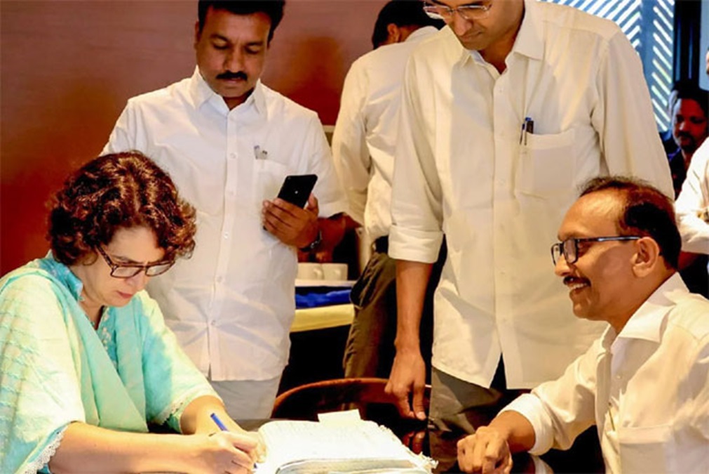 The election will be held on November 13. Priyanka Gandhi submitted three sets of her nomination papers.