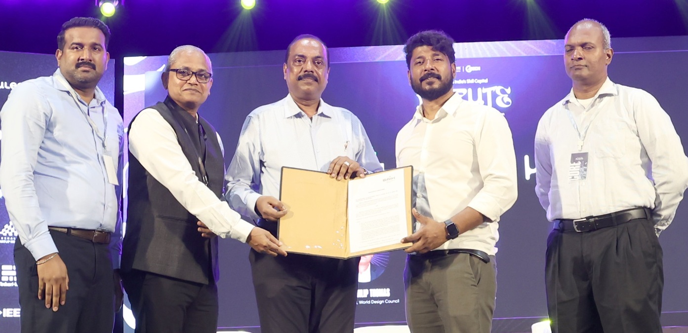 Shri Jayakumar P, CEO of Toonz Media Group, Shri Philip Thomas, Country Head of the World Design Council, and Shri Nikhil Chandran, Founder and CEO of Tiltlabs, handed over the MoU to the MuLearn representatives.