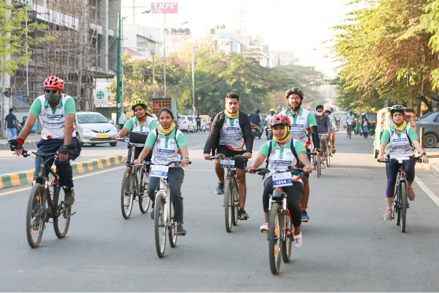 ICycle in association with HDFC, initiated by Lion’s Club HSR, organized “Samanathe” to celebrate equality on the eve of women’s day. The Cycle ride witnessed participation of 200 enthusiastic cyclists. About 70 women spearheaded the Celebratory ride covering a campaign of 15 km.
