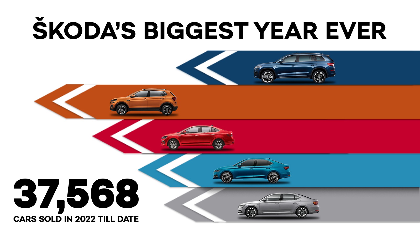 These cars see ŠKODA AUTO India touch 37,568 total sales for 2022 with more than a quarter yet to go. This makes 2022 the Biggest Year ever for ŠKODA AUTO in India. The previous best by the company was 34,678 units sold in 2012.