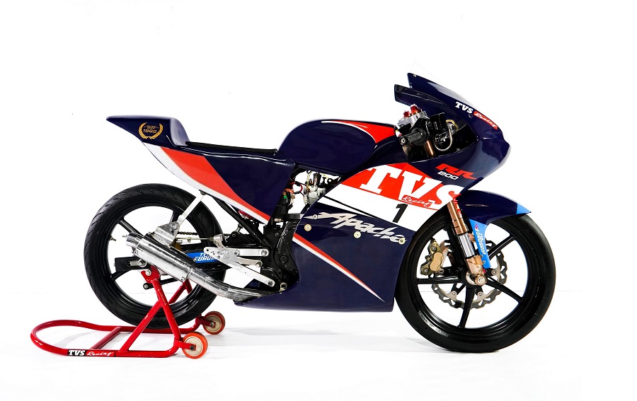 TVS Racing has developed a specially designed TVS Apache RR 200, a track-build motorcycle keeping in mind the requirements of the young riders. The motorcycle boasts a 197.8 cc, 4 Stroke, 4 Valve, SOHC oil and air-cooled engine with 5-speed transmission, low drag race fairings, and adjustable suspension. The track build motorcycle is designed for young riders between 13 and 19 years old and is equipped with TVS Racing livery, race ergonomics, and special component tyres from TVS Eurogrip.