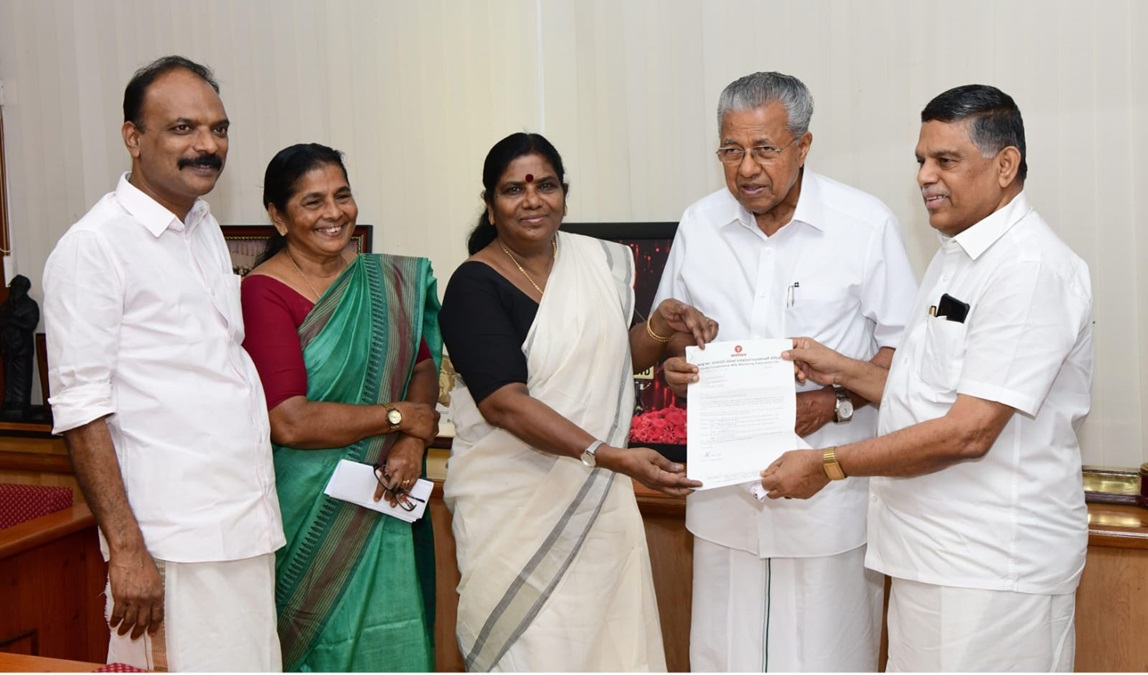Minister for Dairy Development and Animal Husbandry J Chinchurani, Milma Chairman K S Mani, Thiruvananthapuram Regional Cooperative Milk Producers Union (TRCMPU) Chairman Mani Viswanadh and Ernakulam Regional Milk Producers Union (ERCMPU) Chairman M T Jayan handed over the cheque for the amount to Chief Minister Pinarayi Vijayan at his chamber.
