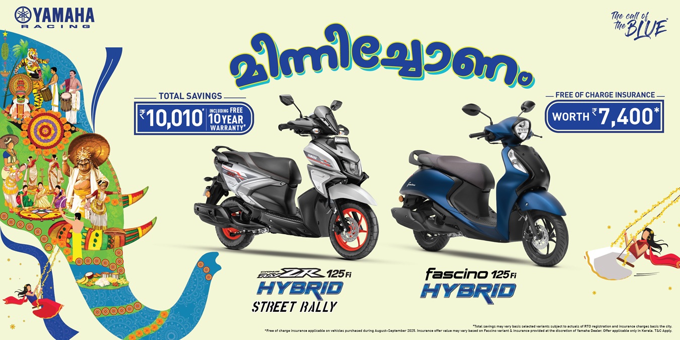 As Kerala ushers in the festive spirit of Onam, India Yamaha Motor is celebrating the auspicious occasion with special offers for its customers in the state. Yamaha’s exclusive festive deals include attractive price benefits, free insurance and easy finance schemes on its popular Hybrid scooter range and FZ motorcycles — making it the perfect time to ride home your dream Yamaha.