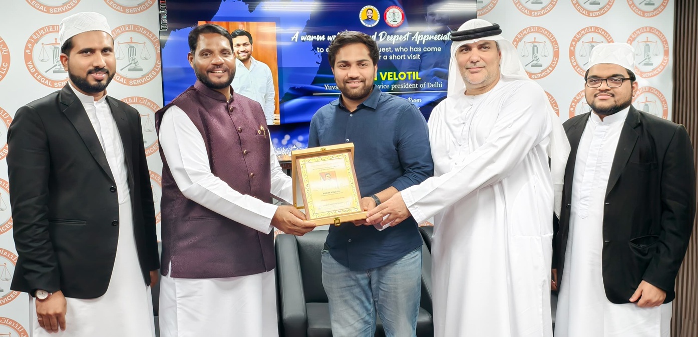 Youth activist and Vice President of Bharatiya Janata Yuva Morcha, Delhi, and aerospace engineer Arjun Velotil visited the head office of Yab Legal Services in the UAE.