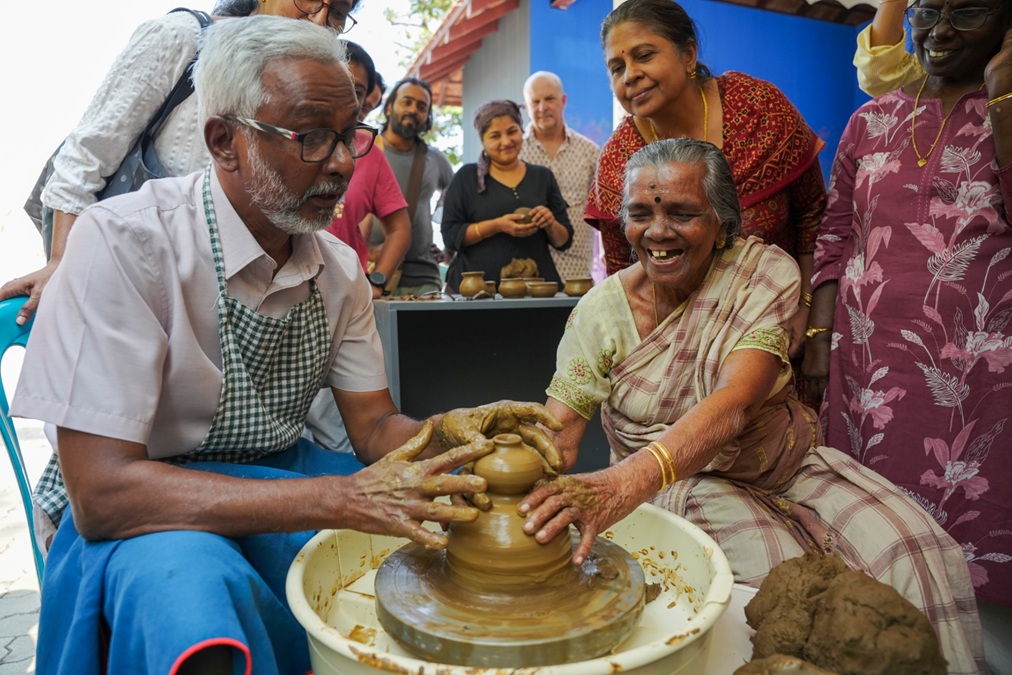 A three-day Terracotta & Wheel Pottery Workshop, conducted by artist Jayan VK at ABC Art Room, Water Metro, Fort Kochi, introduced basic pottery and clay modelling techniques to the participants, who also contributed to making a large jar with sea-themed clay shapes.