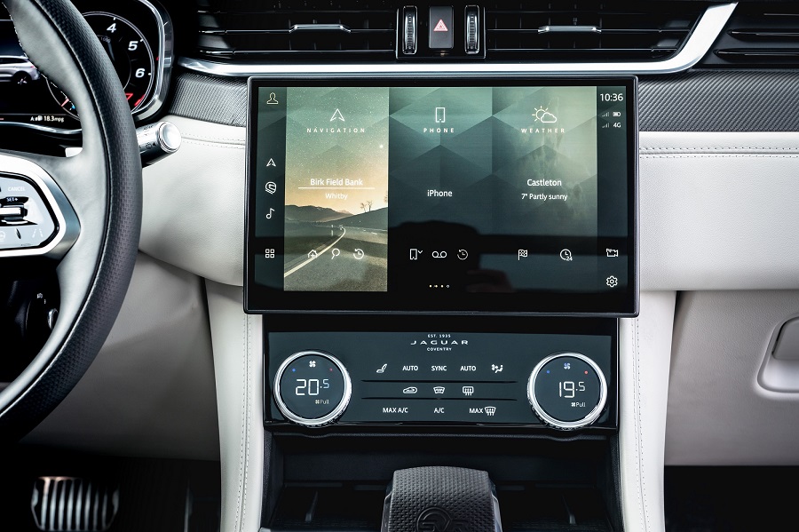 At the heart of the precision crafted and luxurious interior, with its new sporty centre console, incorporating an optional wireless device charger and improved console stowage, is the seamlessly integrated, centrally-mounted 28.95 cm (11.4) curved-glass HD touchscreen, which sits within an elegant magnesium alloy casing and provides access to the intuitive new Pivi Pro infotainment.