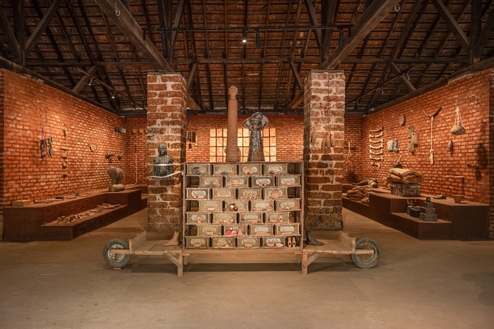 The installation envelops the viewer in a monochrome world of red and ochre, concentrating centuries of labour knowledge into a single sensory field. There is no narration, no didactic explanation. Instead, the space demands slow attention. You walk among bricks that feel identical until you notice the palm prints. You notice the objects only after realising they are not props, but lives condensed into form.