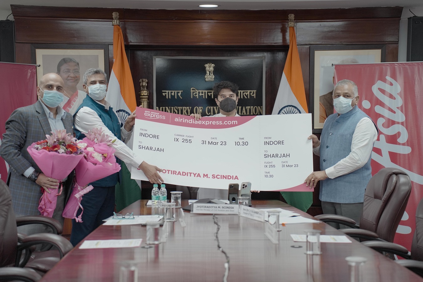 Air India Express, on Friday, launched its inaugural service on the Indore -Sharjah route, which was flagged off by Jyotiraditya M Scindia, Union Minister of Civil Aviation & Steel, Government of India, via video conferencing this morning. The event was attended by Gen.(Dr.) V.K.Singh (Retd.), Union Minister of State for Civil Aviation & Road Transport and Aloke Singh, Managing Director, Air India Express & AirAsia India.