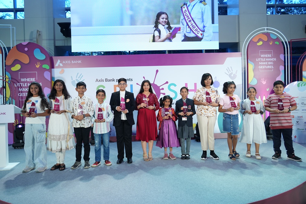 Axis Bank, one of the largest private sector banks in India, felicitated the national winners of SPLASH, an annual Pan-India competition on Art, Craft, and Literature for children in the age group of 7-14 years. The winners were felicitated by senior Axis Bank officials –Amitabh Chaudhry, MD&CEO; Rajiv Anand, Deputy Managing Director; Rajkamal Vempati, Head –HR; Arjun Chowdhry, Group Executive at Axis House in Mumbai. Each of the six finalists was awarded a scholarship of Rs. 1 lakh, along with exciting hampers and electronic gadgets from partners such as Vivo, BSA Cycles, American Tourister, and BoAt. Additionally, the runners-up received Rs. 50 thousand each.