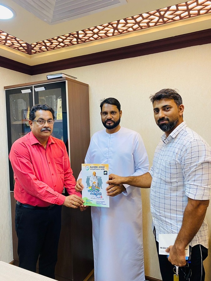 Mahatma Gandhi Cultural Forum Sharjah has released the brochure of “Gandhi Smriti” by presenting it to former president of Mahatma Gandhi Cultural Forum PR Prakash and CEO of Yab Legal Services, social worker and Lok Kerala Sabha member Salam Pappinissery.
