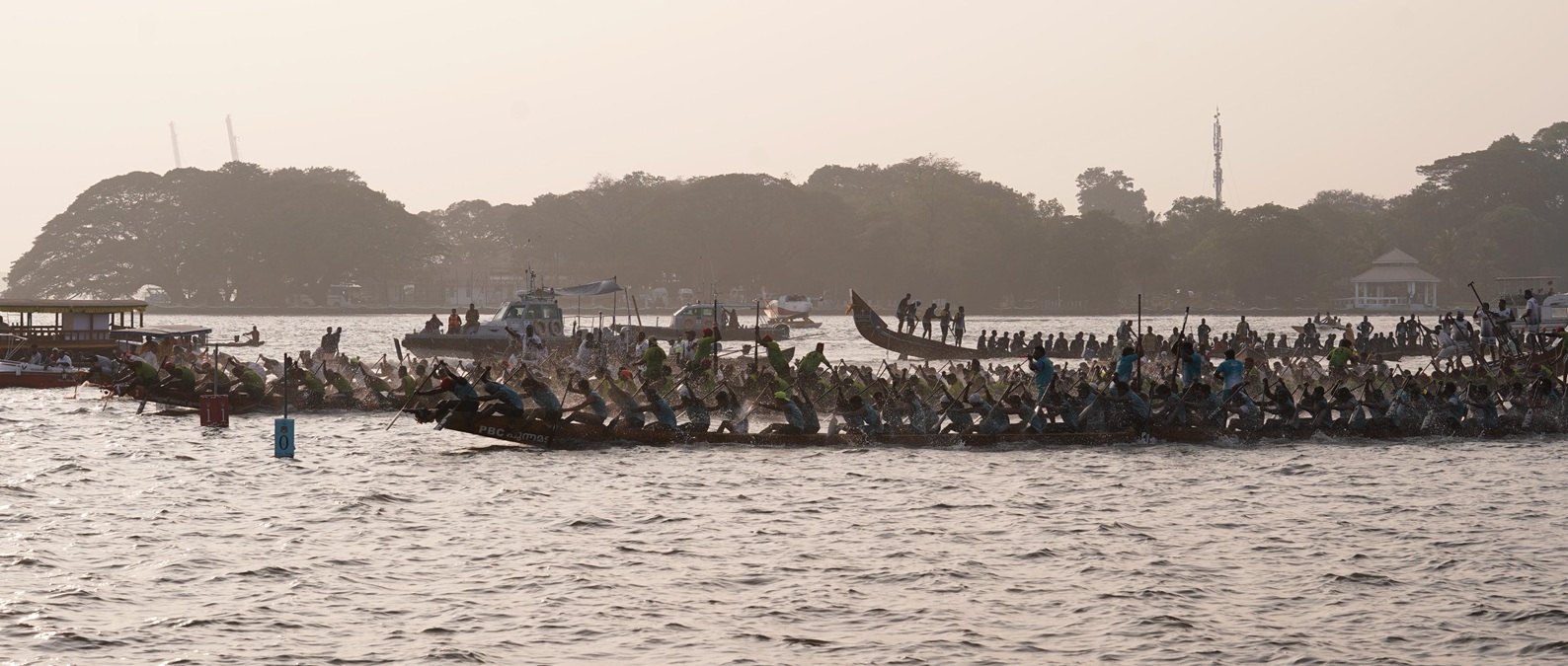 The finish positions at Marine Drive are as follows: Tropical Titans (Melpadam Chundan, rowing for Pallathuruthy Boat Club) fourth, Chundan Warriors (Naduvile Paramban of Emmanuel Boat Club) fifth, Thunder Oars (Karichal Chundan of KCBC Boat Club) sixth, Backwater Chargers (Cheruthana owned by Thekkekkara Boat Club) at seventh, Wave Gliders (Champakulam of Changanassery Boat Club) at eighth and Backwater Warriors (Payippadan of Kumarakom Town Boat Club) ninth.