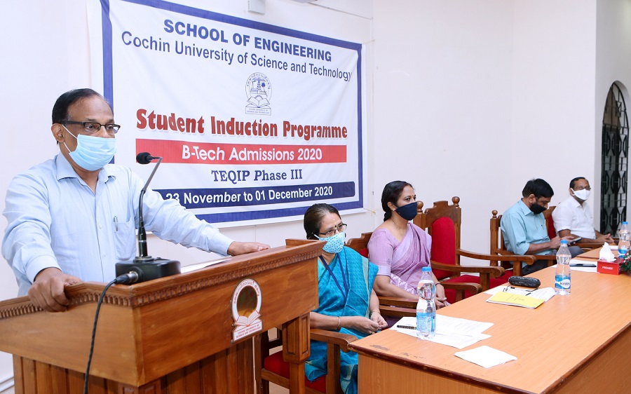 A six-day online induction programme which is a continuation of the AICTE-mandated programmeheld during 8 th to 20 th November for the first year B.Tech students, has begun at the School of Engineering, CUSAT. The 30 hours’ programme which lays emphasis on three proficiency modules such as mathematics, soft skill and computer programming, was inaugurated by Vice Chancellor Prof. K.N. Madhusoodanan. Prof. P.G.Sankaran, Pro-Vice Chancellor, Prof. K.S. Beena, Member, Syndicate and Dean, Faculty of Engineering, Dr V. Meera, Registrar, Prof. George Mathew, Principal, SoE, and Prof. A.B. Bhasi, Convenor, SIP Committee, spoke at the function.