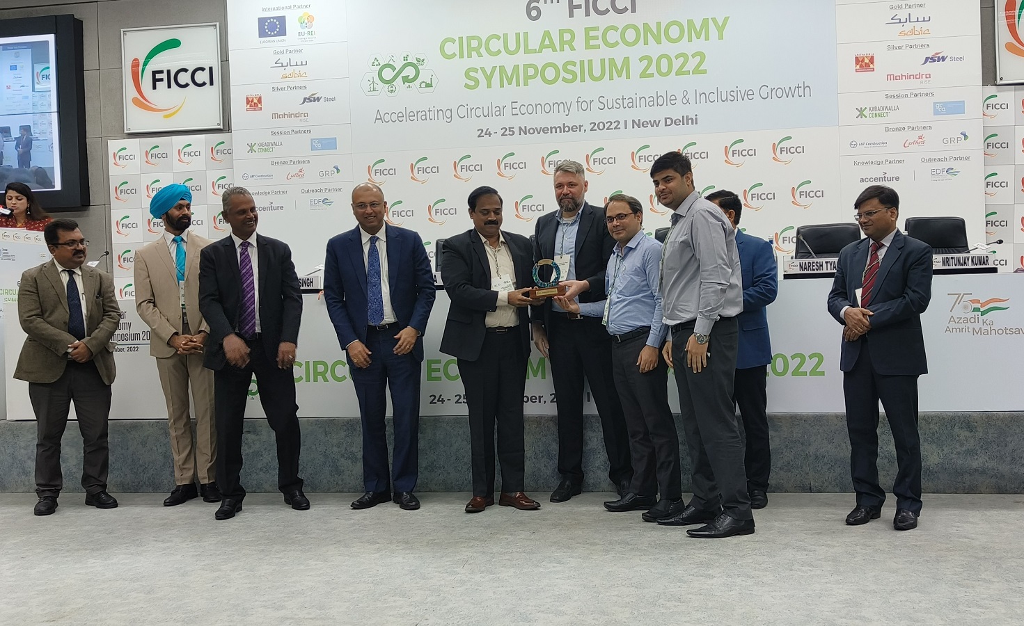 Leading cement company, Dalmia Bharat Ltd. was announced as winner in the “Large enterprise” category at the 3rd Edition Indian Circular Economy Awards 2022 on 24th November 2022 at the Inaugural session of the FICCI Circular Economy Symposium 2022. Dr. Arvind Bodhankar, Executive Director, Dalmia Bharat Ltd. received the award on behalf of the cement major conferred by Dr. Michael Bucki, Counsellor and Head of Section Sustainable Modernization, Delegation of European Union. The jury panel comprised of Dr. Mukund Rajan, Chairman, Ecube investments and former Chief Ethics Officer, Tata Sons; Mridula Ramesh, ED Sundram Textiles Limited and Founder Sundram Climate Institute and Casper Mayland, Environmental Counsellor, The Royal Danish Embassy.