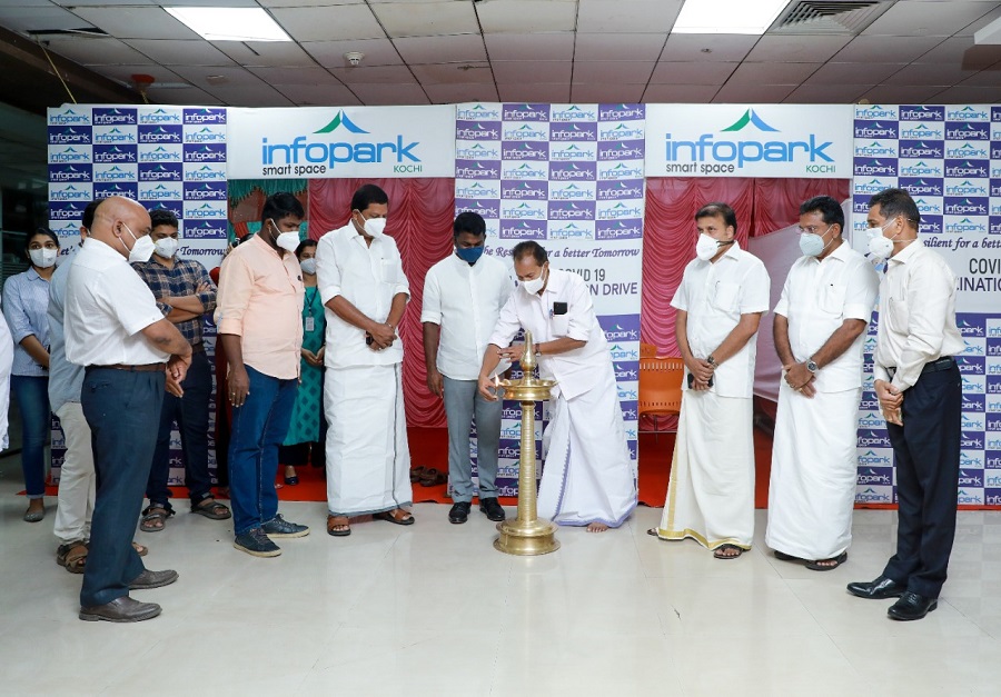 Five-day-long mass covid vaccination camp has started at Kochi Infopark campus on Monday. The camp was inaugurated by PT Thomas MLA. 8000 doses of the Covishield vaccine will be administered to the beneficiaries during this major vaccination drive organized by Infopark for employees of various IT companies and their family members.