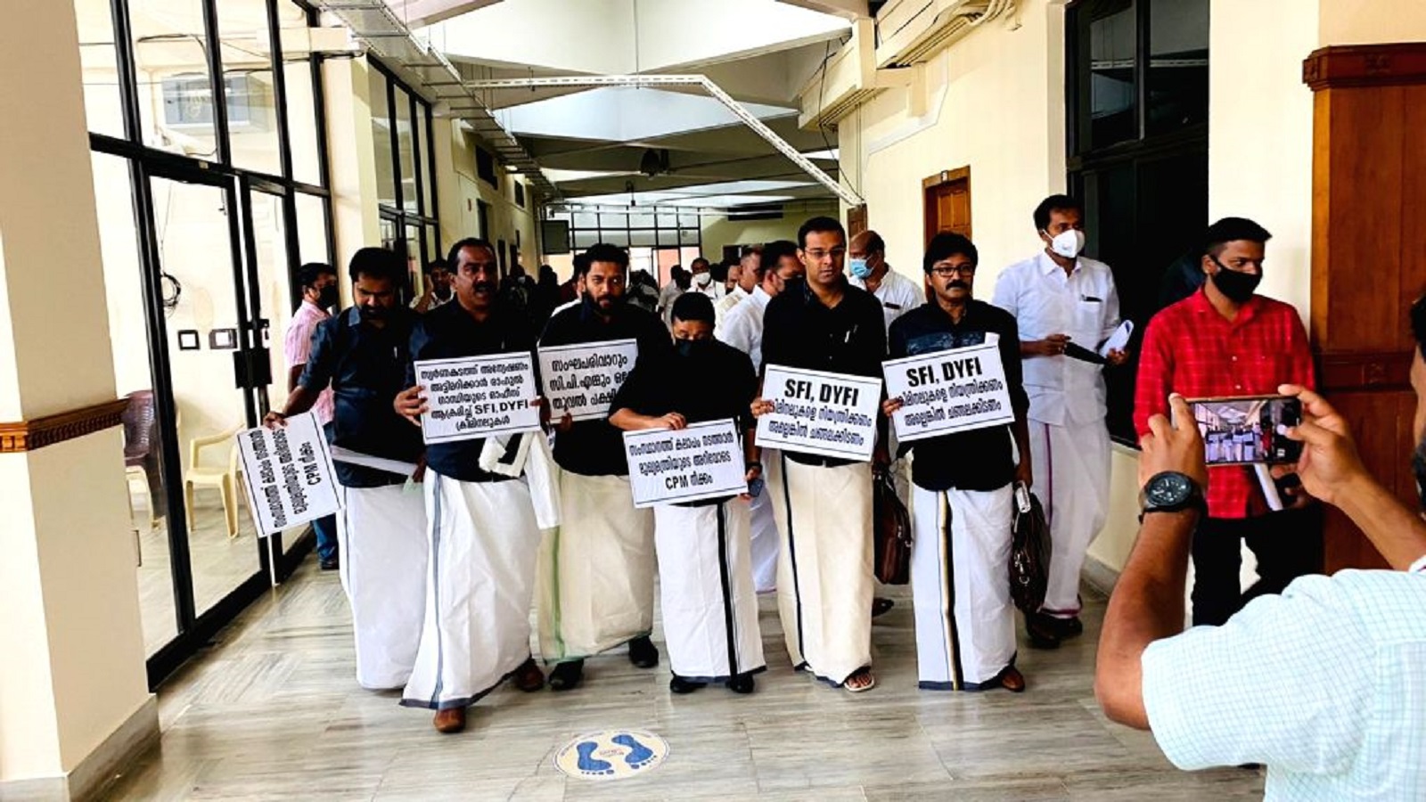 Trouble began right from the start of Question Hour at 9 a.m. when six opposition legislators, dressed in black shirts and masks, displayed placards highlighting the vandalisation of the office of Wayanad Congress MP Rahul Gandhi.