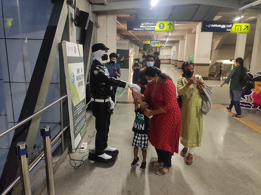 Passengers were very curious to see the Saba Robot mainly because of the commando theme selected for his attire. He is wearing a leather Jacket and Sunglasses with his stands kept forward where people can avail their sanitizer and check the temperature. Nearly 103 people slowed down to have a glance at the Robot. Kids were attracted to Saba. Master Neerav, who was going with their parents literally pulled them towards saba and spend some time inspecting saba and, finally took a selfie with him.