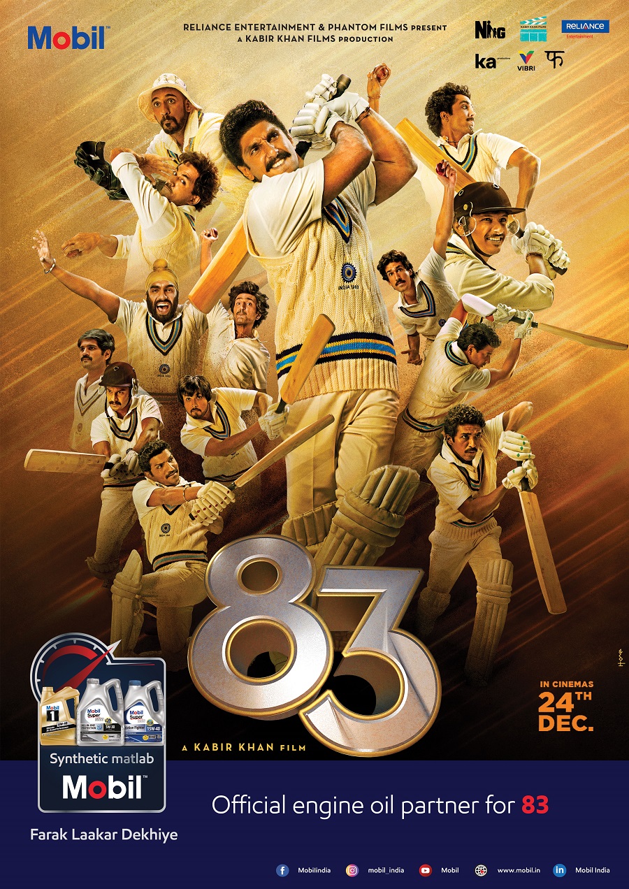 Mobil, a leading brand of engine oil in India has partnered with the most awaited movie of the year ’83’, that is set to hit the silver screens this Christmas. India will relive the historic win at the 1983 Cricket World Cup through this sports drama. The movie is sure to stir patriotic fervour across the country. Ranveer Singh starrer ‘83’ has been making waves ever since the project was announced. Movie buffs have been eagerly waiting for the movie ever since the makers confirmed that it will release in the theatres.
