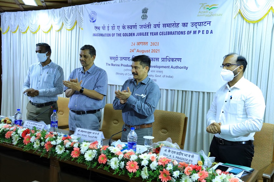The Marine Products Export Development Authority (MPEDA) ushered into its 50th year of eventful and glorious existence by launching year-long Golden Jubilee celebrations, the first of its kind in the history of the organisation making way for the participation of hundreds, including pensioners, exporters and all its regional divisions and societies, through virtual platform.