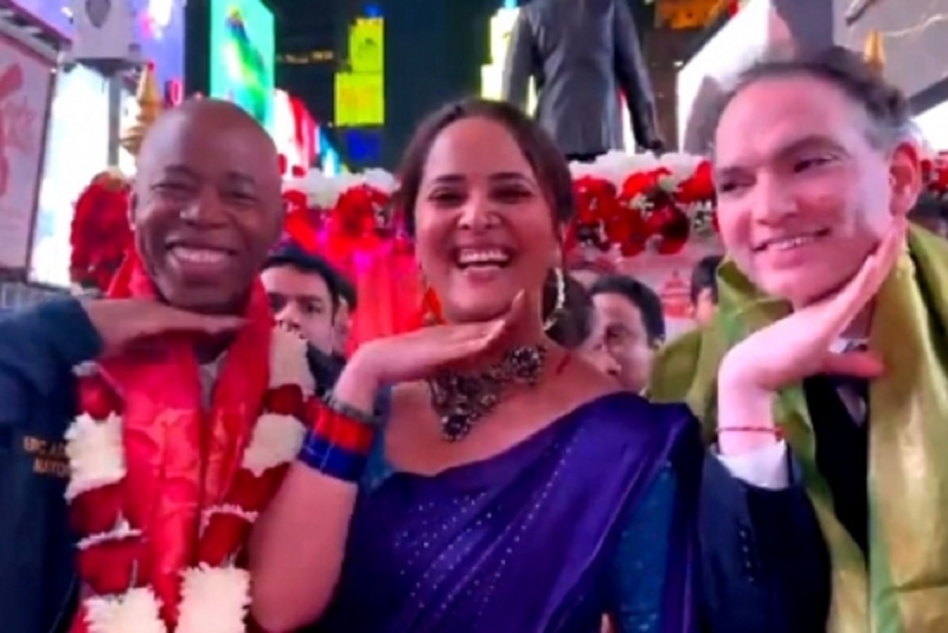 New York’s Mayor Eric Adams was seen doing the hand gesture during an event organised by the Telugu community in the city where he interacted with the people and also celebrated the festival of Batukamma with them.