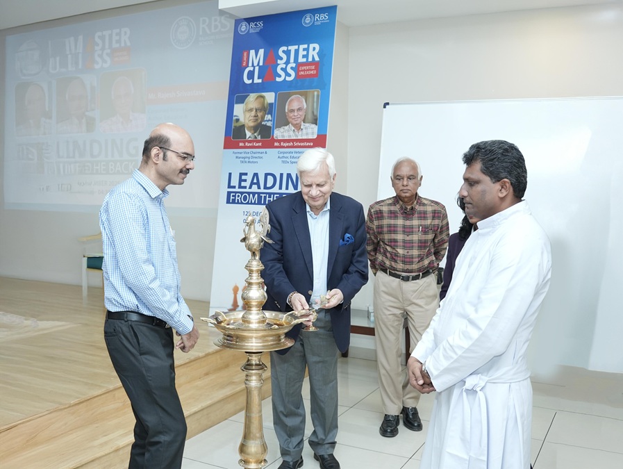 Rajagiri College of Social Sciences (RCSS) and Rajagiri Business School (RBS) organised a special edition of the Rajagiri Masterclass Series for alumni, focusing on “Leading From The Back.” The full-day session was held at the RBS campus.